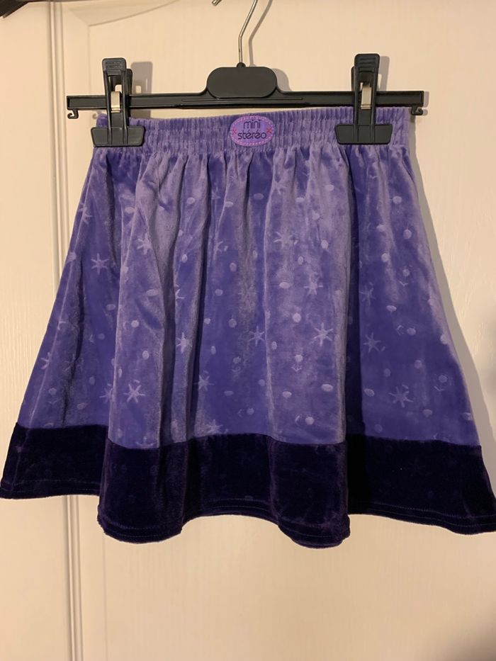 Lot 6 vêtements : blouson rouge, jupe velours violette, cardigan, robe â bretelles, tee shirt rose manches courtes, le tout en très bon état