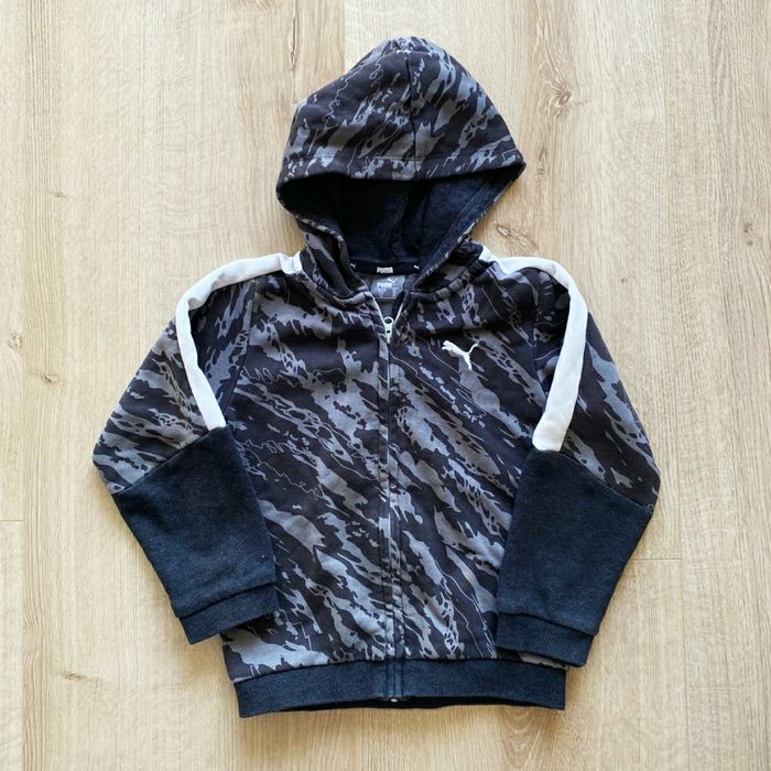 🐈‍⬛ Veste de Survêtement à capuche façon Hoodie Puma Officiel. Article pour Enfant (Unisexe Garçon et Fille) en très bon état et fabriqué en coton. Motif treillis camouflage et logo brodé. ----- ⭐ Marque/Gamme : Puma 🎨 Coloris : Gris 📏 Taille/Mensurations : 3 Ans ----- 📦 Envoi rapide et soigné 💡 Astuce : Jusqu'à -30% en achetant en lot !