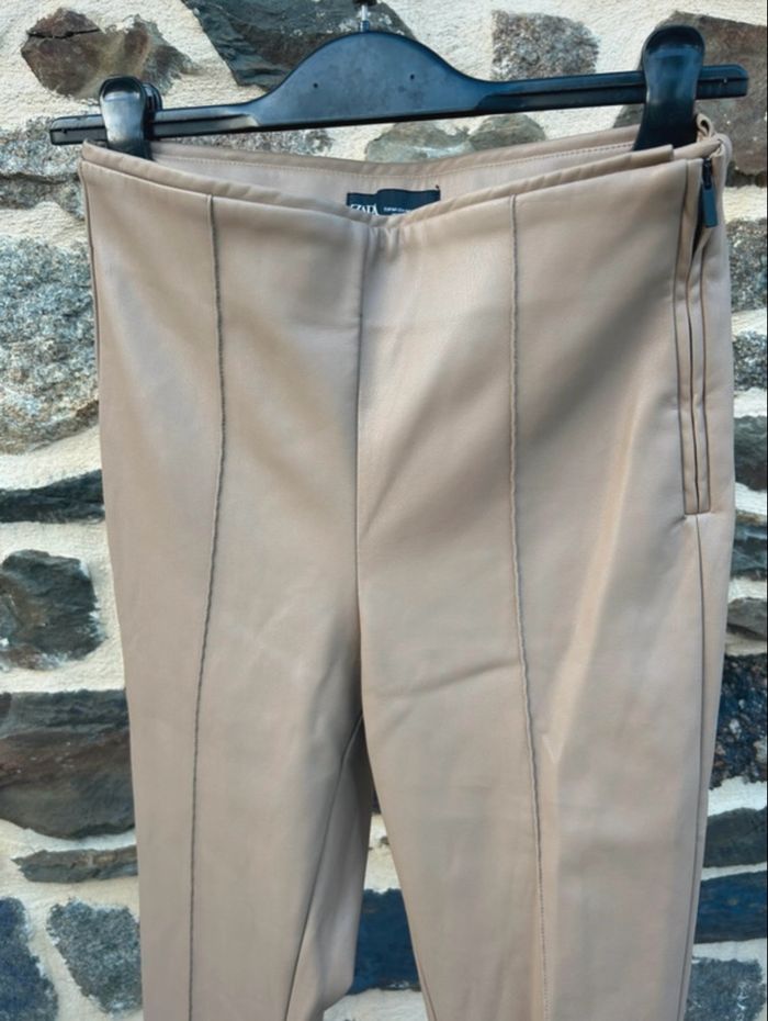 Pantalon ajustée en similicuir beige Taille M Neuf Jamais porter Zara
