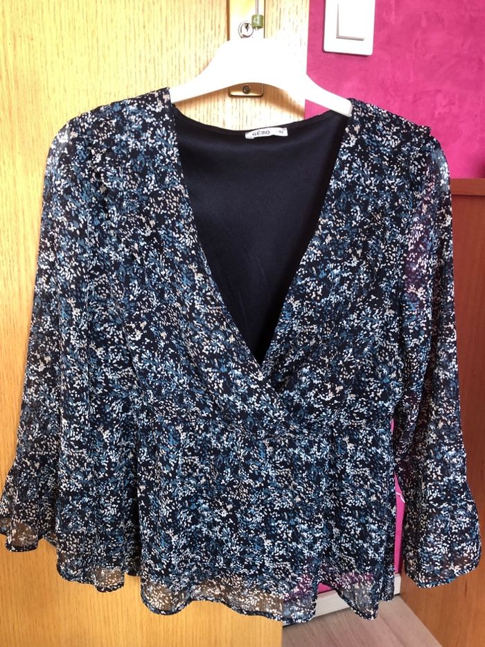 Dimensions : longueur 57cm / largeur entre aisselles 46cm / largeur épaule 38cm. Doublé au niveau du corps / manches transparentes.