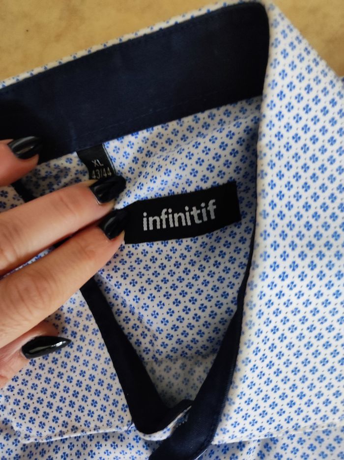 Chemise manches longues de marque infinitif, taille XL, bon état, légère tâche (voir photo)