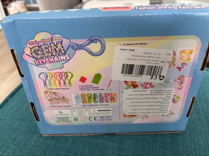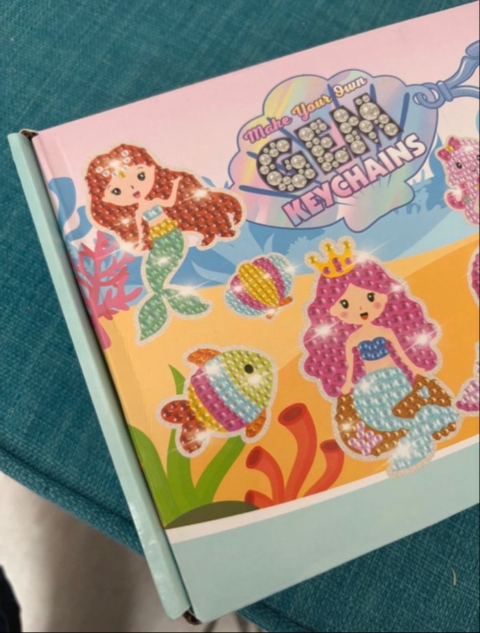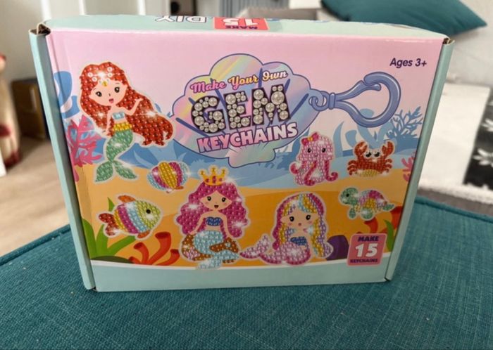 Vends un kit complet de loisirs créatifs "Make Your Own Gem Keychains" pour réaliser 15 porte-clés en "diamond painting" (peinture aux diamants). • Thème : Sirènes et monde marin (poissons, crabes, tortues, etc.) 🧜‍♀️🐢 • Contenu : Tout le nécessaire pour créer 15 porte-clés scintillants. • Âge : À partir de 3 ans et plus. • État : Neuf, jamais utilisé / Boîte en excellent état (idéal pour un cadeau). Parfait pour occuper les enfants lors d'un après-midi pluvieux ou pour une activité d'anniversaire ! Envoi rapide et soigné ‼️Photo et vidéo de l’emballage avant envoi ‼️ N’hésitez pas à regarder le dressing 🤗