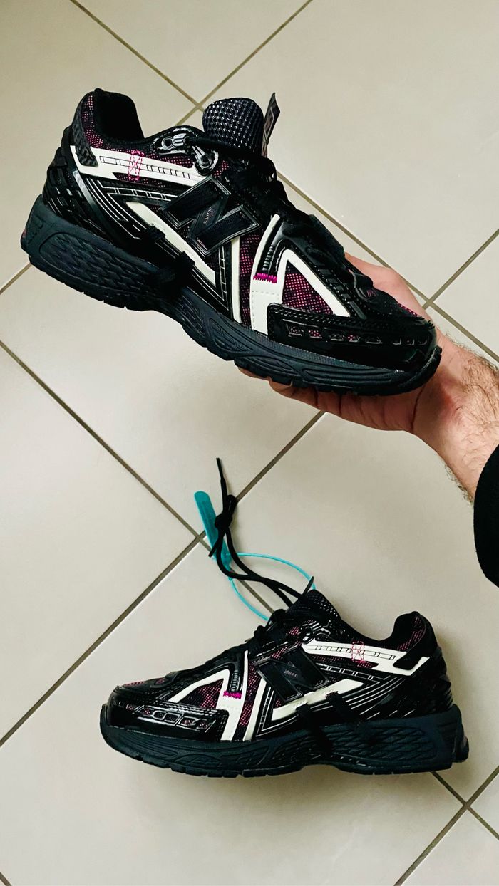 Baskets 👟 NB 1906 A. De couleurs noir avec des accents roses et blancs qui ce recharge à la lumière . Neuf dans la boite. Taille 44. Très bon état. ⭐️ État : 10/ 10 📏 Taille : 44 🎨 Couleur : Noir, rose et blanc 📦 Livraison rapide et soignée