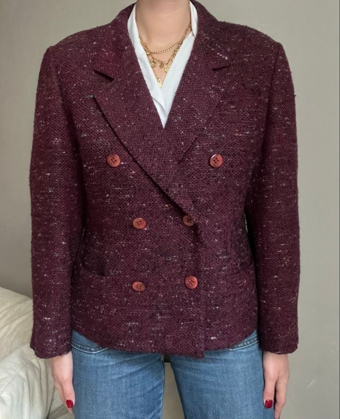 Blazer vintage et oversize en laine cardée et laine peignée prune / burgundy moucheté / chiné - photo numéro 1