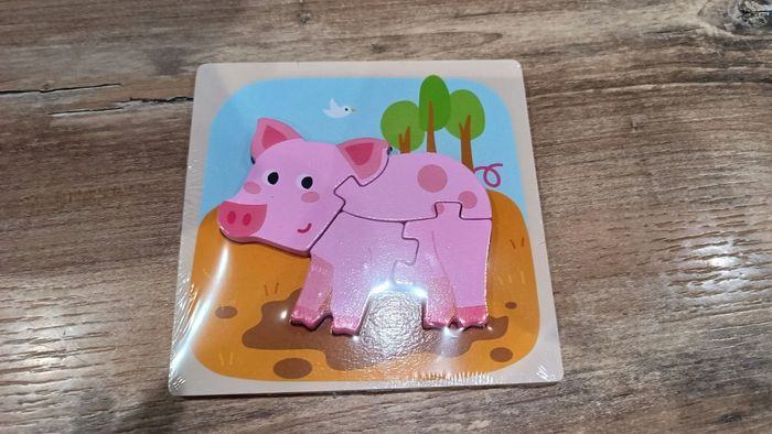 Puzzle en bois cochon, de marque inconnue, à partir de 6 mois, neuf. Possibilité de faire des lots.