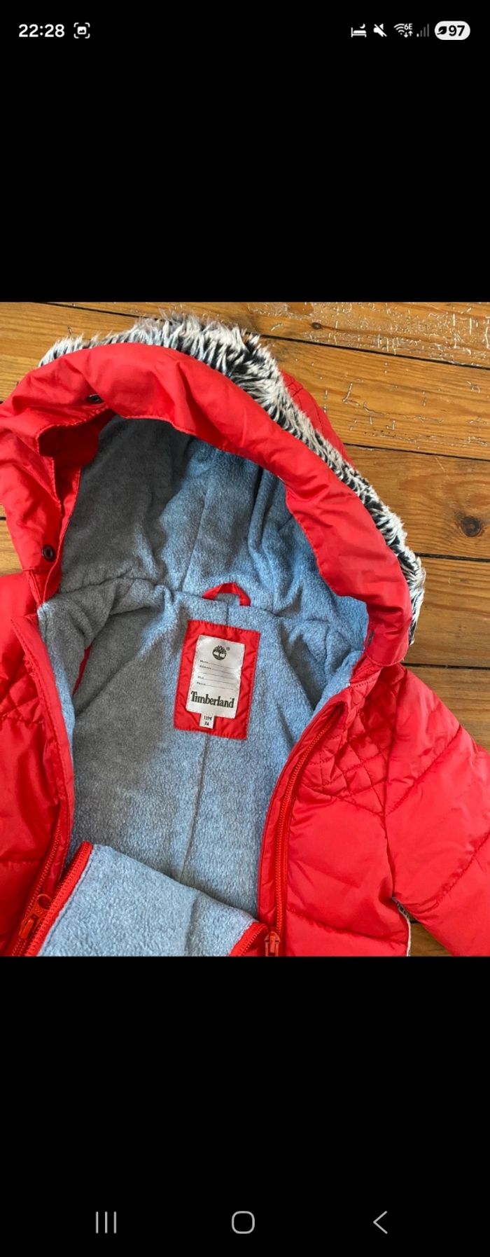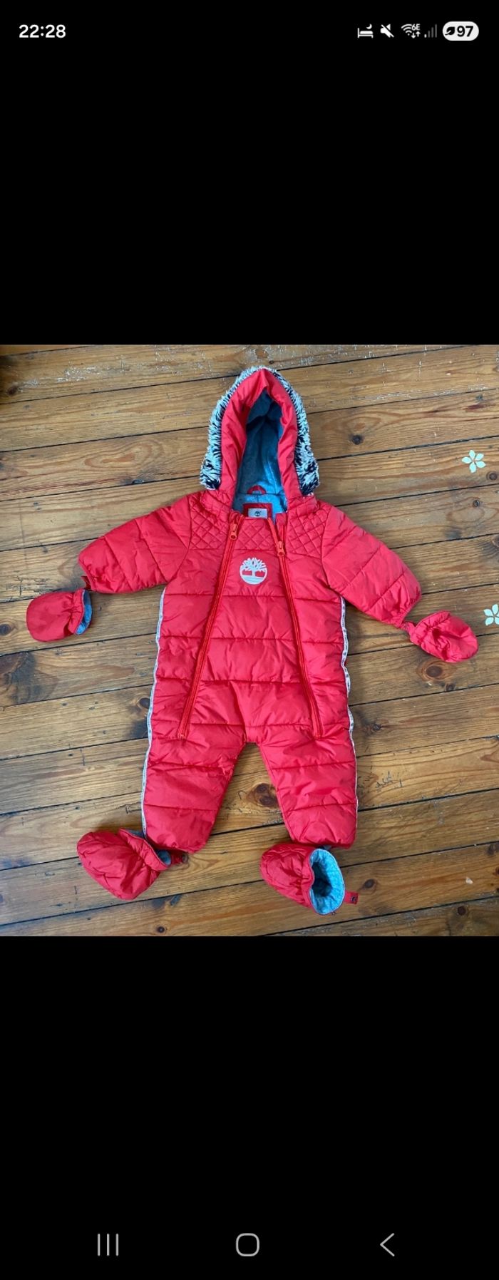 Taille 12 m (74cm) On peux retirer la moumoute de la capuche Les gants et chausson se retire également
