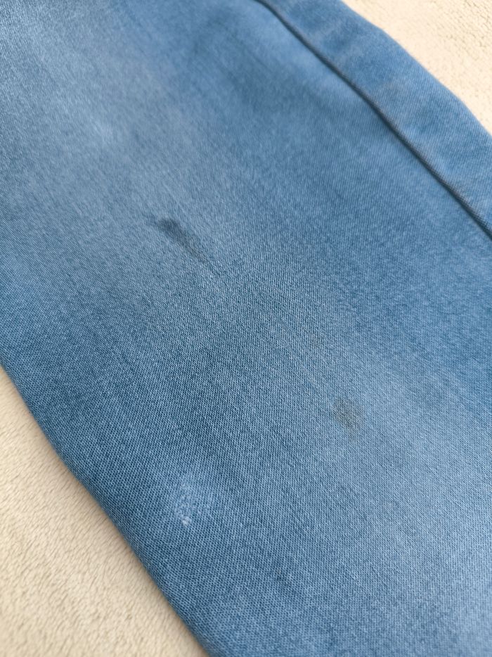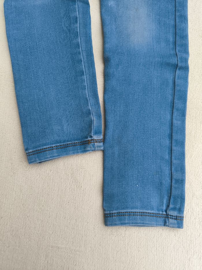 Pantalon tregging Marque Okaïdi Taille 9 ans, 134 cm • Coloris bleu • Taille élastique ajustable • 2 poches • Genoux tachés, quelques fils de tirés En bon état #evelyne_filles_9ans #evelyne_filles