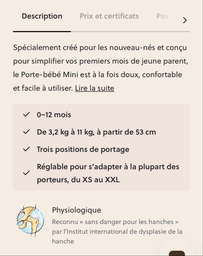 Porte bébé mini en tissu aéré Description en photo numéro 3 En excellent état Très peu utilisé Facilement lavable Prix sur le site officiel : 119€