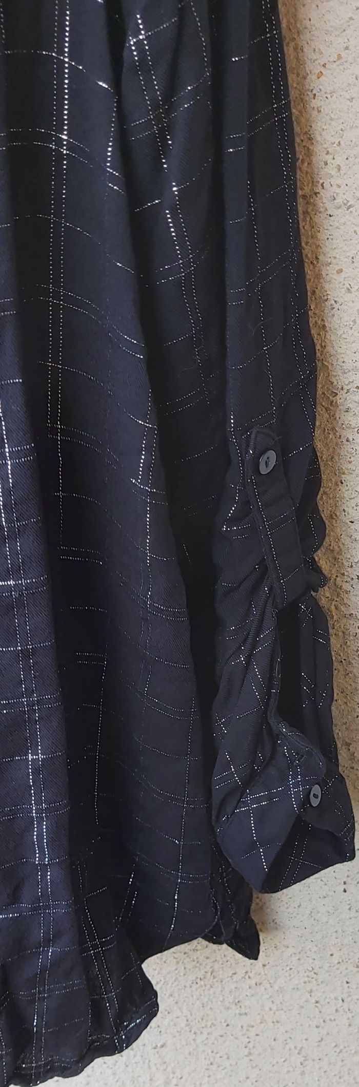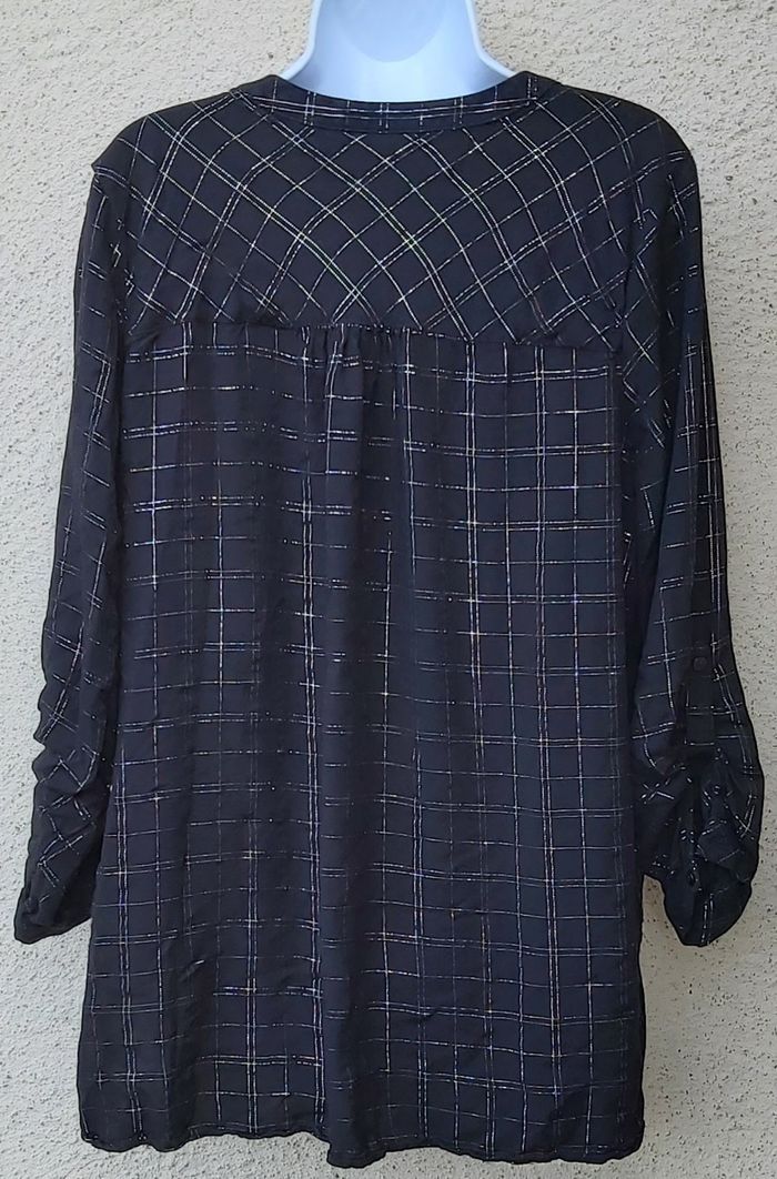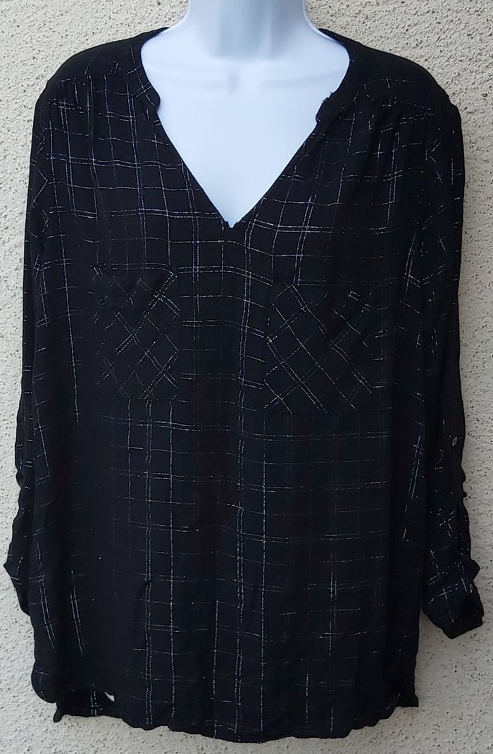 Blouse de coloris noir avec liserets argentés Taille XL Parfait état. Je la vends également en beige dans une autre annonce...