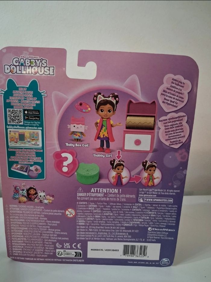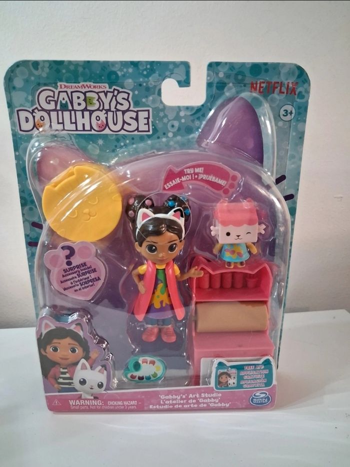 Coffret comprenant : - 2 figurines : gabby et un petit chat - des accessoires : palette de peinture et meubles - une boîte surprise avec accessoire surprise. La Poupée animée : Appuyez sur les oreilles de chat de la figurine Gabby pour faire passer la blouse d'artiste de Gabby de propre à maculée de peinture, puis appuyez de nouveau pour la faire redevenir propre. N'hésitez pas à consulter mes autres annonces remises automatiques sur lots. #gabby's #cadeau #anniversaire
