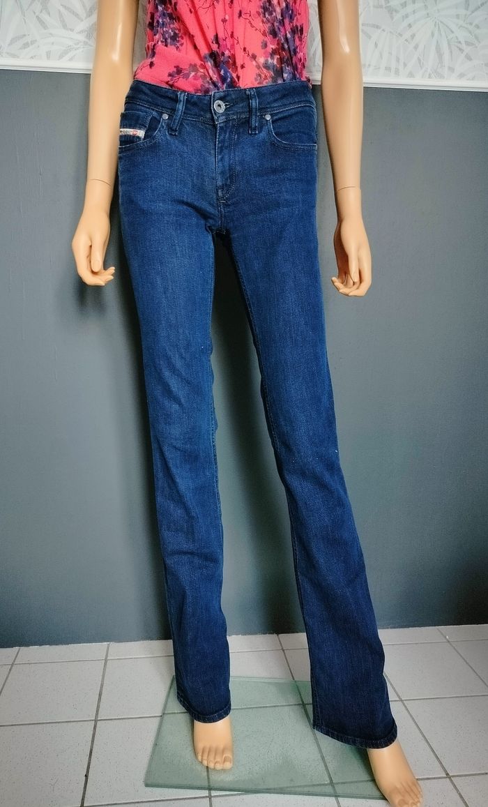 Jean aux jambes légèrement évasées, couleur stone. Taille indiquée w26 correspondant à une T34, Longueur 34. Modèle Bebel. Marque Diesel. Fabrication italienne. En 80% coton, 18% lyocel et 2% élasthanne. En très bon état malgré quelques légères petites bouloches : voir photo. Taille basse. Réf B*154 📏Taille : 34cm Longueur : 1m10 #marynlineshop78jean34 #marynlineshop78Pantalon34