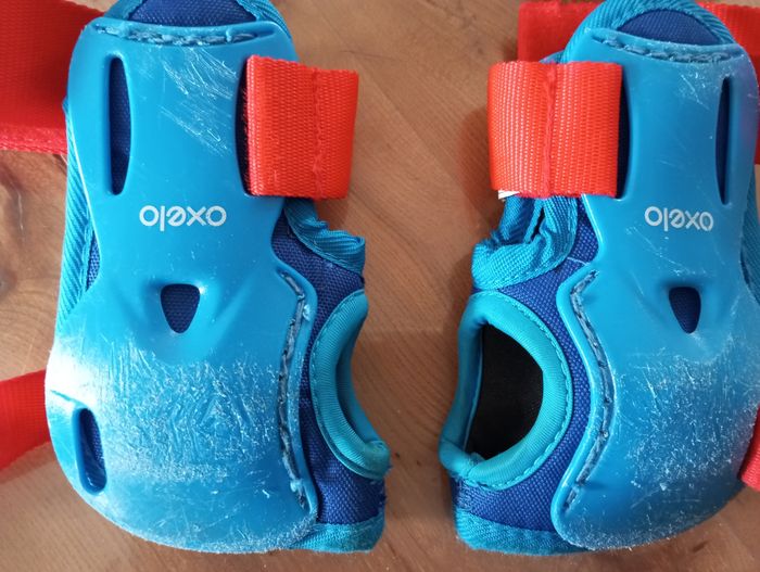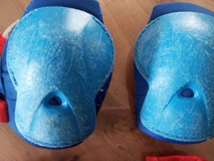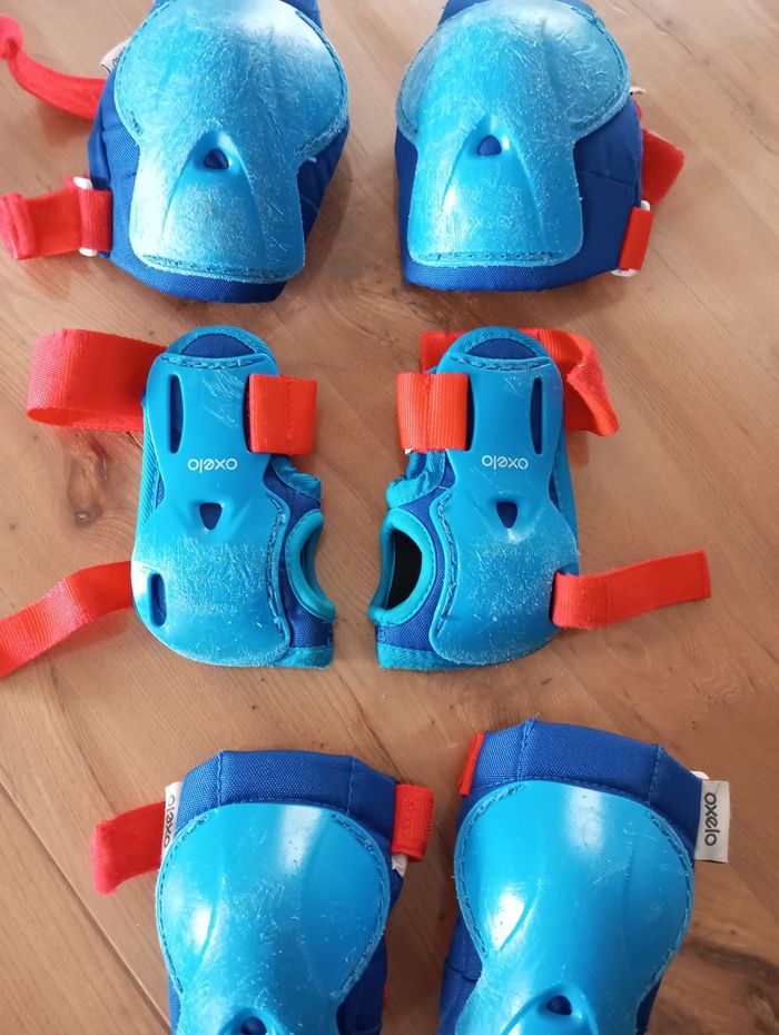Protection pour roller skateboard trotinette... Coude genou et poignet Beaucoup d égratignures mais toujours efficace à la protection
