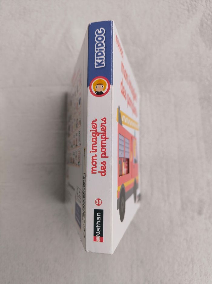 Livre Kididoc Numéro 32 : Mon imagier des pompiers Éditions Nathan À partir de 12 mois • Pages cartonnées • Pages animées -> Casque, camion, échelle, lance • Intérieur du livre en très bon état • Coins légèrement abîmés En très bon état #evelyne_livres