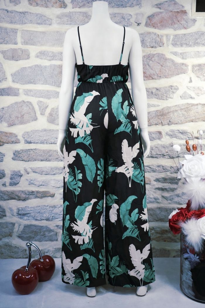 Combinaison ample escapade exotique noire et multicolore Femme taille 54 marque Asos ✴️ Bretelles fines et réglables ✴️ Taille élastiquée froncée ✴️ Encolure V ✴️ Coupe ample, légère et confortable arborant un fond noir élégant, rehaussé par un audacieux imprimé tropical. Des feuilles de bananier et de palme se dessinent en teintes de blanc pur et de bleu-vert turquoise/canard. Quelques touches de bleu plus foncé ajoutent de la profondeur au motif. ✴️ Composition -> 100 % polyester ✴️ Longueur => 141,5 centimètres ✴️ Longueur entrejambe => 73,4 centimètres ✴️ Tour de poitrine => 104 centimètres ✴️ Tour de taille > 104 à 142 centimètres