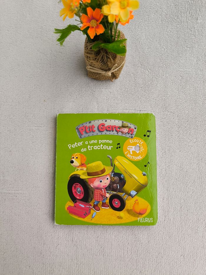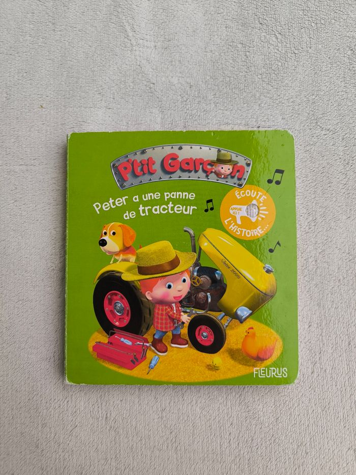 Livre sonore dysfonctionnel Peter a une panne de tracteur Éditions Fleurus • Pages cartonnées • Histoire • Intérieur du livre en très bon état • Coins abîmés Ne fonctionne plus En état satisfaisant #evelyne_livres