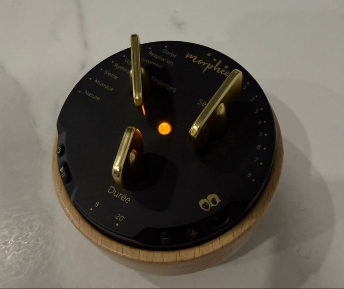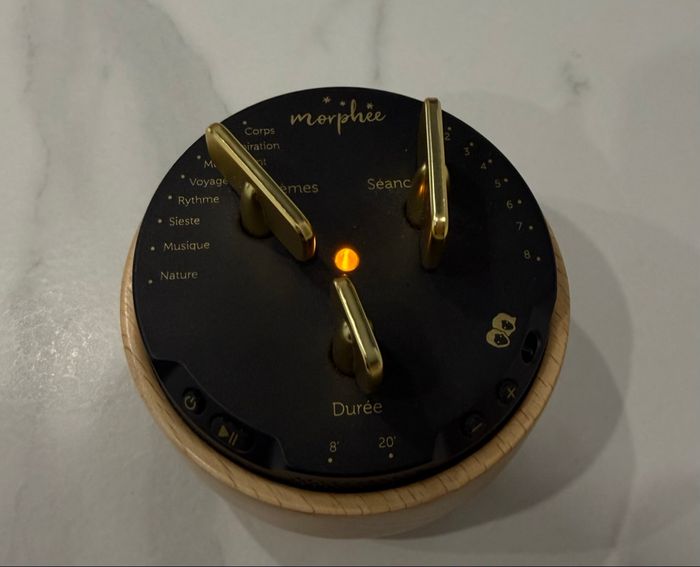 Morphée les clés du sommeil. Comme neuf, peu servi. 210 séances réparties en 8 thèmes : Balayage corporel, Respiration, Mouvement, Voyages immersifs, Méditation rythmée, Sieste , Musique douce, Sons de la nature Morphée permet de : S'endormir facilement et profondément Profiter d'un sommeil profond et réparateur Réduire les insomnies Durée des séances : 8 ou 20 minutes Voix: masculine ou féminine au choix Dimensions : 10 cm x 10 cm × 6,8 cm Poids net : 250 g Contient un câble USB pour le chargement. Morphée fonctionne sur batterie (autonomie de 3h30 d'écoute)