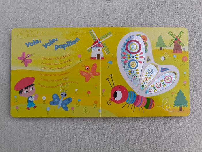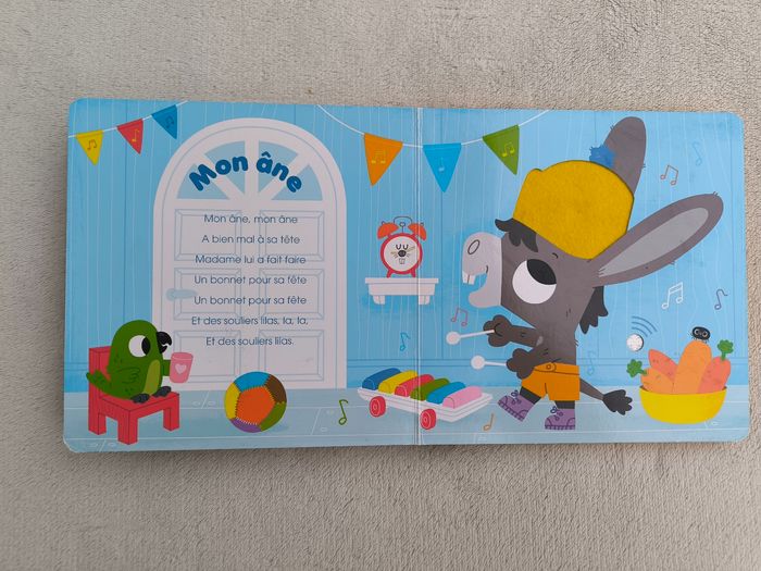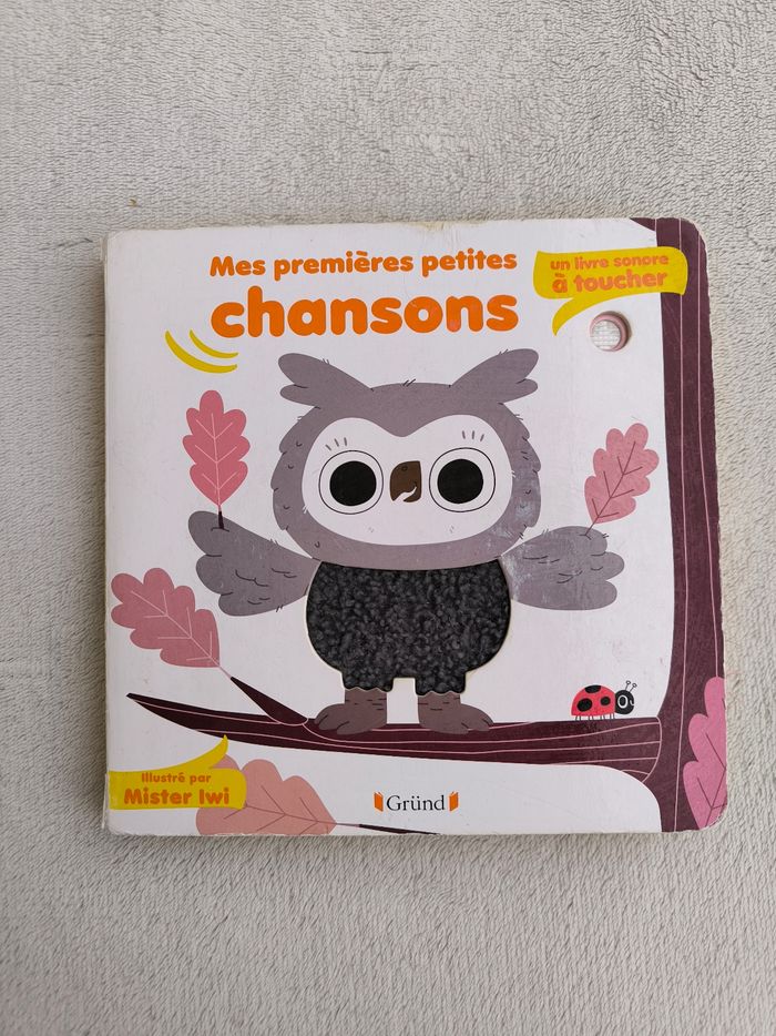 Livre sonore à toucher Mes premières petites chansons Éditions Gründ À partir d'1 an • Pages cartonnées • 5 matières à toucher, 5 chansons, 5 images -> Coucou hibou -> Le rock'n'roll des gallinacés -> Vole, vole, papillon -> Ah ! Les crocodiles -> Mon âne • Intérieur du livre en très bon état • Coins et arêtes abîmés ⚠️ D'autres livres dans la même collection Fonctionne Piles non incluses En bon état #evelyne_livres