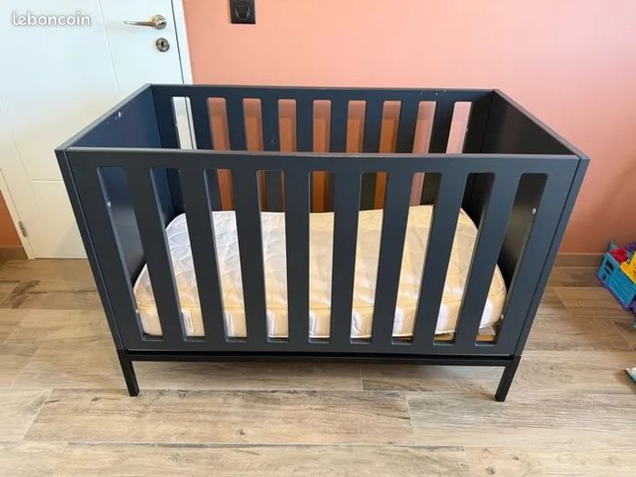 Je vends cette chambre bébé complète de la marque Quax ( Aubert ) - Lit bébé 60x120 cm et commode avec plan à langer - Marque : Quax - Couleur : Noir et bois naturel Vendu avec matelas Aubert et accessoires lit et plan à langer N'hésitez pas à me contacter pour plus d'informations !