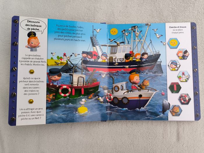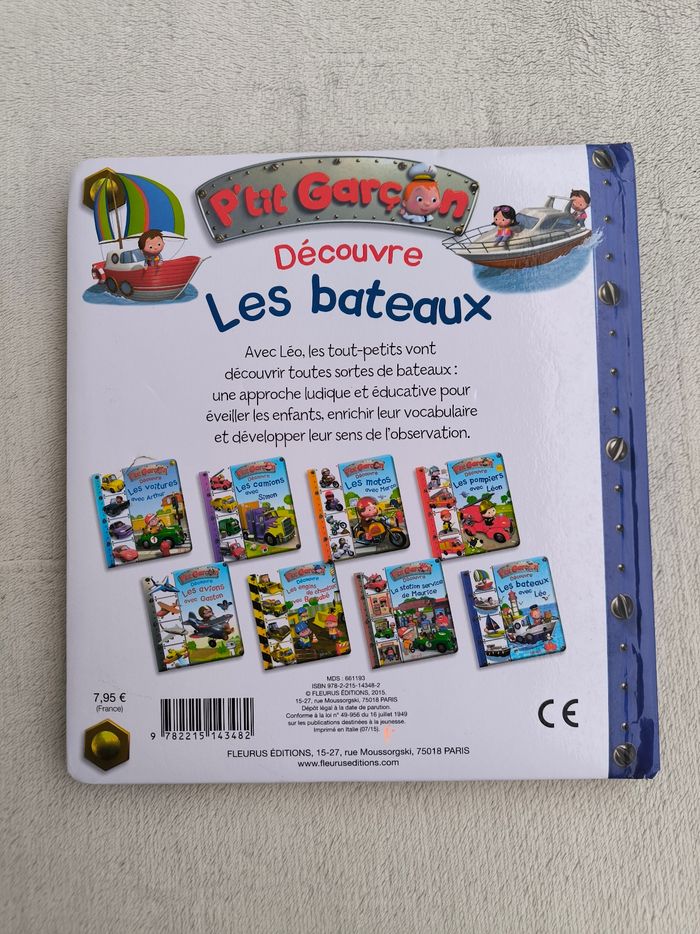 Livre P'tit Garçon grand format Découvre les bateaux avec Léo Numéro 8 Éditions Fleurus • Pages cartonnées -> Bateaux de pêche -> Le port -> Bateaux à voile -> Bateaux à moteur -> Péniches • Cherche et trouve • Intérieur du livre en très bon état • Coins légèrement abîmés • Dernière couverture abîmée En très bon état #evelyne_livres