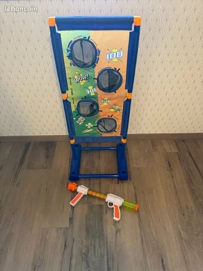 Je vends ce jeu de tir Moov'n go'n shot avec sa cible mobile - Type de produit : Jeu de tir - Fonctionnalités : Cible mobile, pistolet avec balle mousse N'hésitez pas à me contacter pour plus d'informations sur ce jeu amusant !