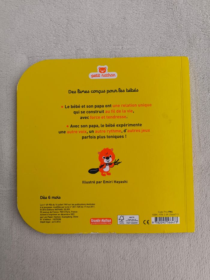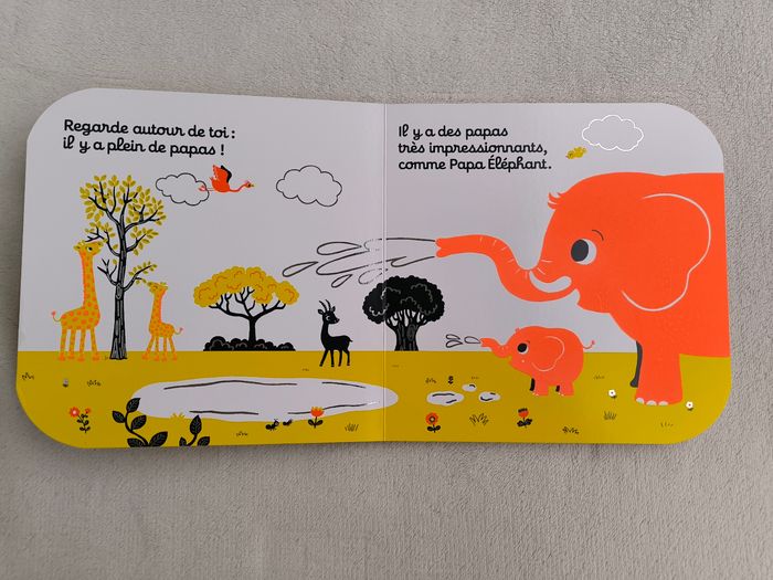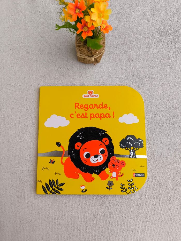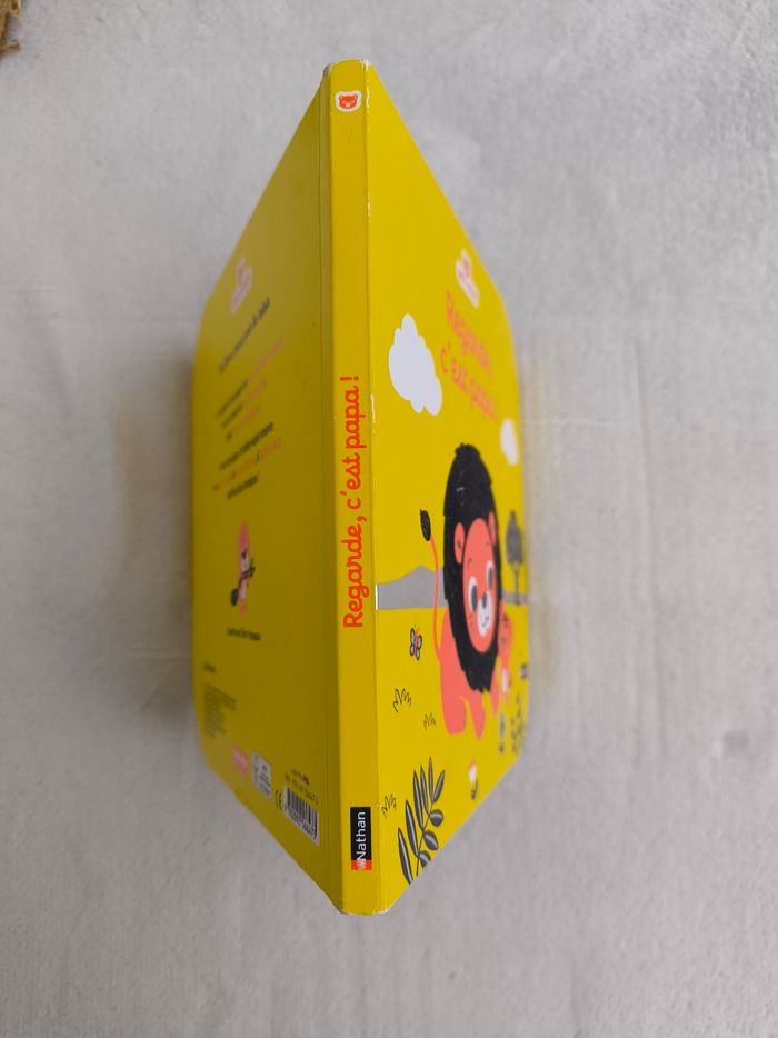 Livre à toucher Regarde, c'est papa ! Éditions Nathan À partir de 6 mois • Pages cartonnées • Parties argentées brillantes, velours -> Éléphant, castor, ours brun, guépard, chimpanzé, papa • Intérieur du livre en très bon état • Coins légèrement abîmés En très bon état #evelyne_livres