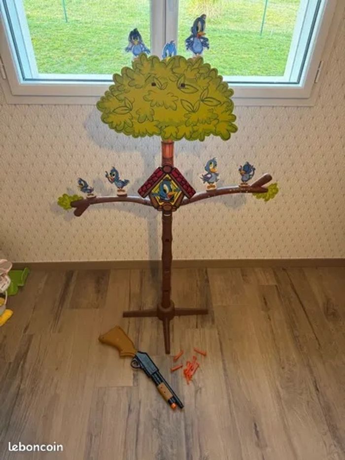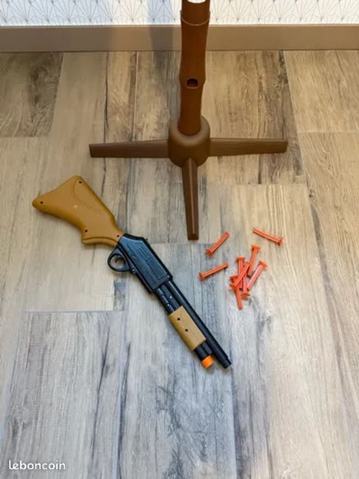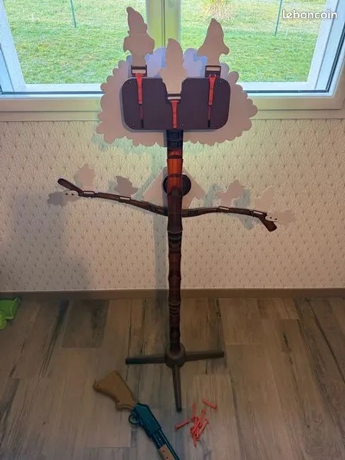 Je vends ce jeu de tir à pigeon en plastique avec ses accessoires. - Type de produit : Jeu de tir - Matière : plastique - Accessoires inclus : Fusils, fléchettes N'hésitez pas à me contacter pour plus d'informations sur ce jeu amusant !