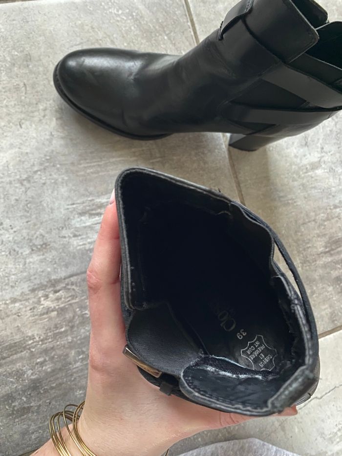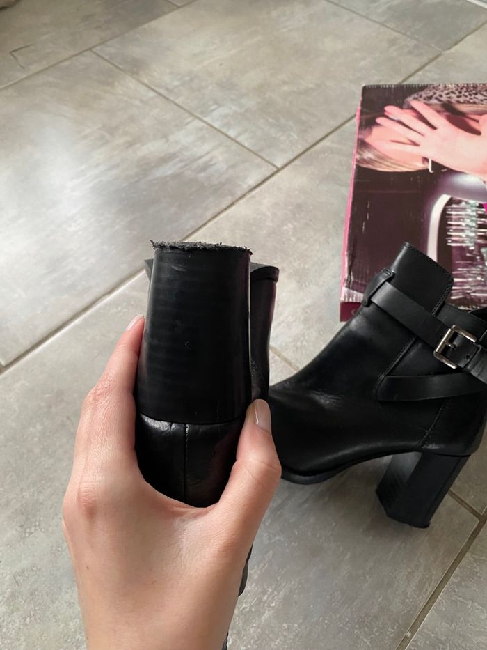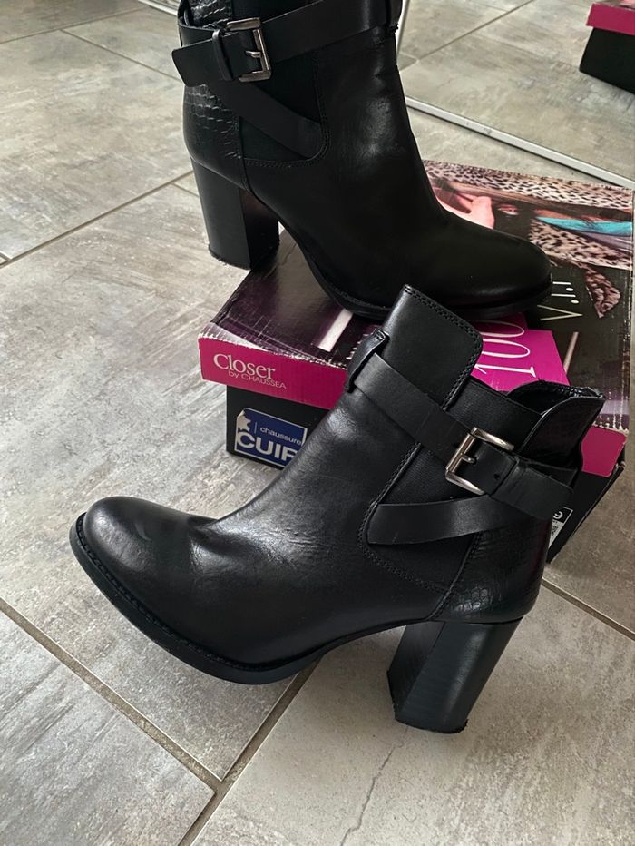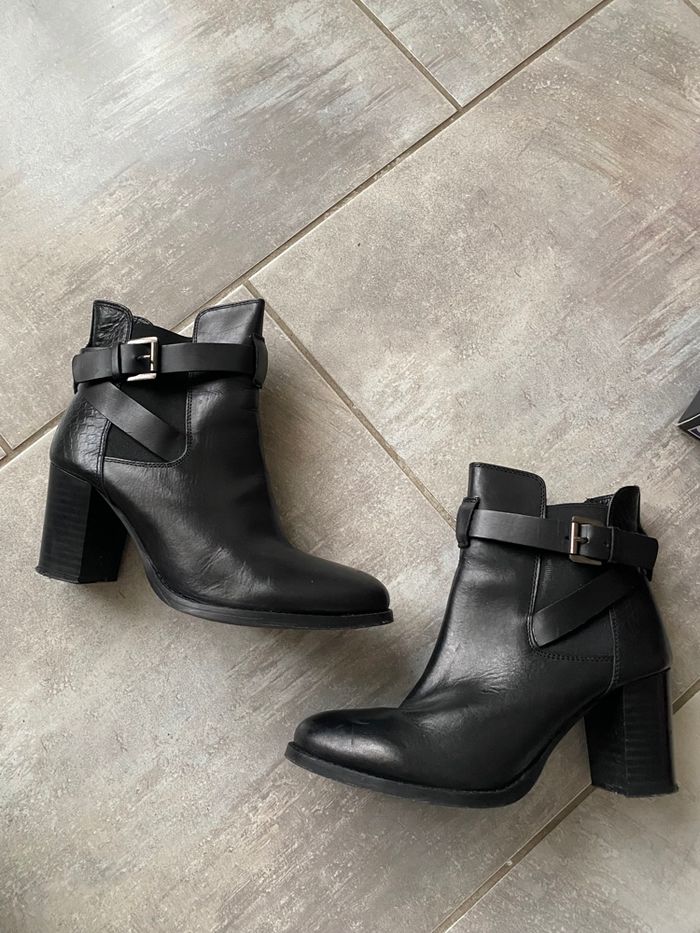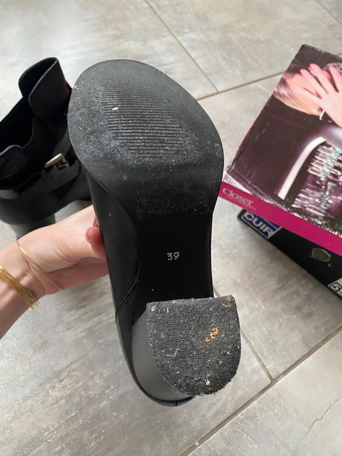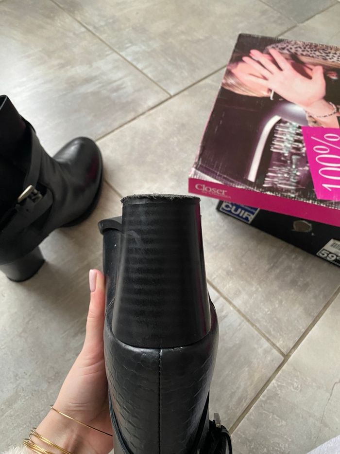Bottines à talons en cuir Pointure 39 Hauteur du talon : 7,3cm Imitation serpent à l’arrière En très bon état : tous les moindres petits “défauts” ont été pris en photo