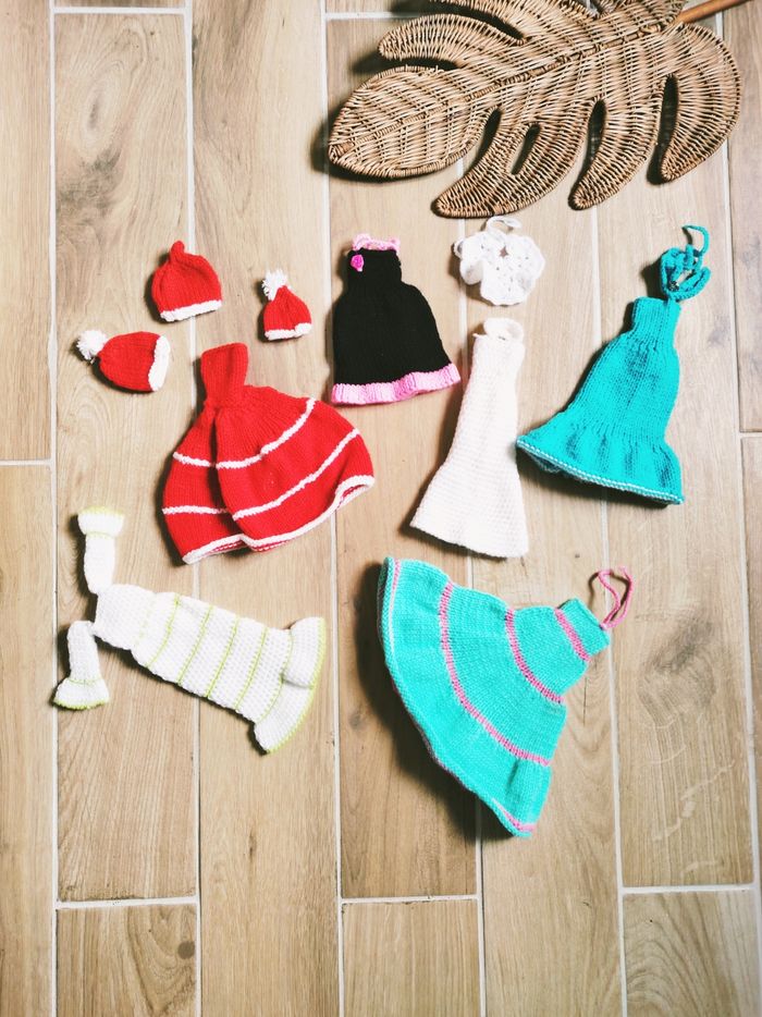 💕Lot de 6 Tenues robes d'hiver en laine tricotées- Barbie vintage