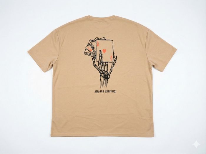 T-shirt Always Winning beige – main squelette cartes As, style poker streetwear - photo numéro 1