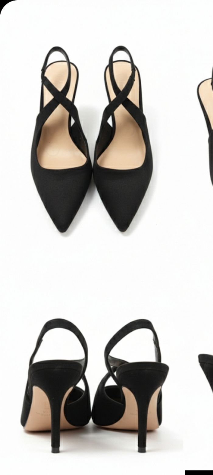 Je vends cette magnifique paire de chaussures à talons aiguilles de chez Mango. Avec leur design épuré et leurs brides croisées élégantes, elles sont l'accessoire indispensable pour sublimer une tenue de soirée ou apporter une touche sophistiquée à un look business. ​État : L'article est en excellent état. Très peu portées, les finitions sont impeccables et la cambrure est parfaitement préservée. ​✨ Caractéristiques & Détails : ​Marque : Mango ​Style : Slingback (bride arrière) avec design croisé sur le cou-de-pied. ​Couleur : Noir profond (Satiné) ​Type de talon : Talon aiguille fin, plus de 8 cm (élance la silhouette)