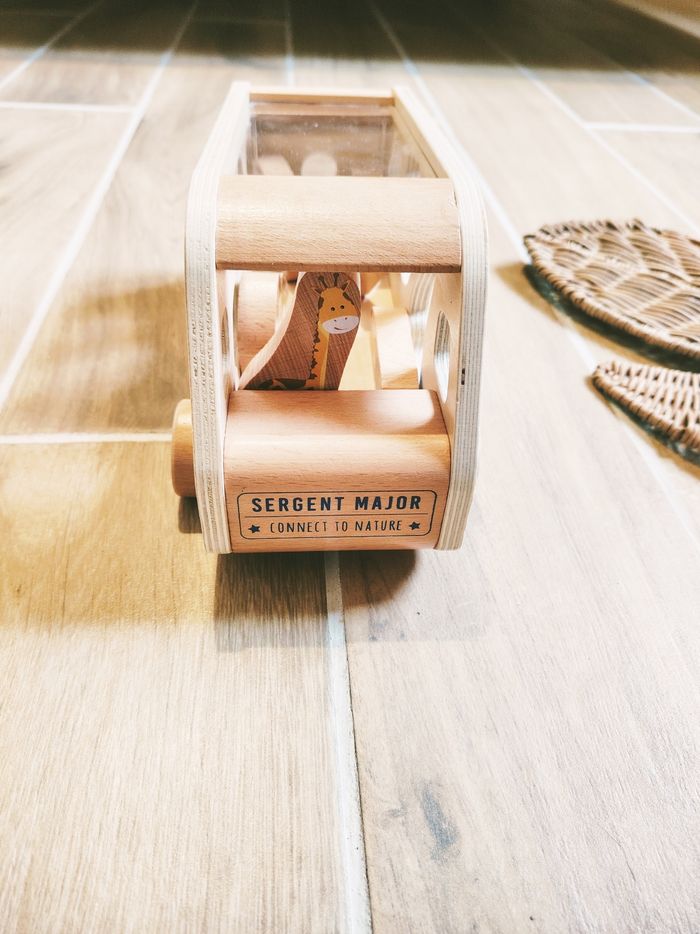 🦁Jeu d'encastrement - Camion de la savane 2 en 1 boîte à formes/animaux en bois marque Sergent Major JB288