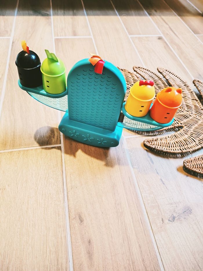 🎀Ce jeu est composé d'une base/socle en forme de balance où votre enfant devra déposer des plots rigolos sans les faire tomber.