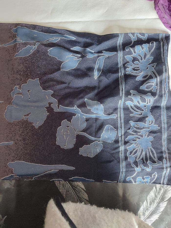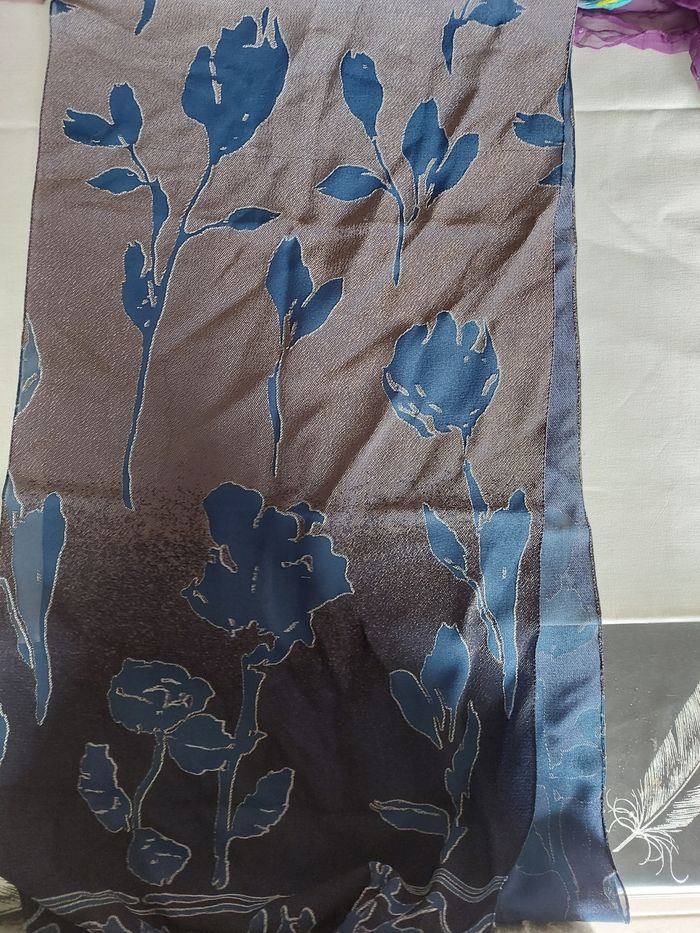 Foulard bleu et gris à motifs 33 x 147 cm TBE