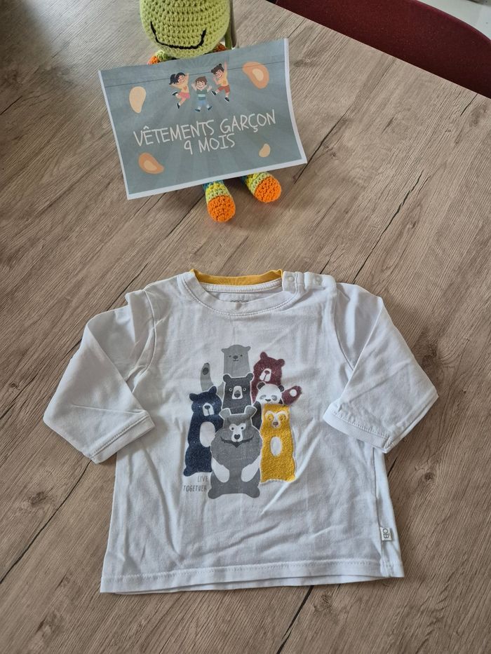 Tee-shirt ML OBAÏBI Taille : 9 mois En bon état Lavé et stocké dans caisse plastique Maman soigneuse 💰 Faites des économies supplémentaires en créant des lots et déclenchez des réductions 😉 📦 Envoi rapide et soigné