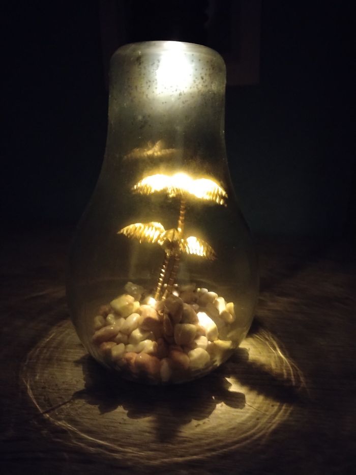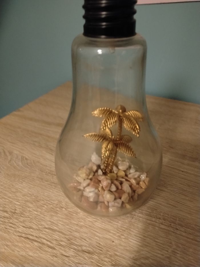 Déco ampoule qui s'allume avec des fausses plantes 22 cm de haut