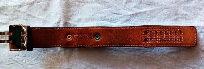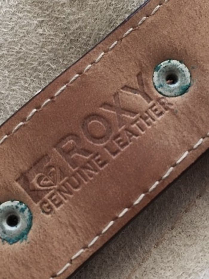 Montre ROXY "Biarritz", boîtier en métal argenté de forme carré, intérieur miroir, aiguilles argent, et bracelet large en cuir à motifs turquoise, bé, en parfait état de fonctionnement, pile fourni, prix définitif.