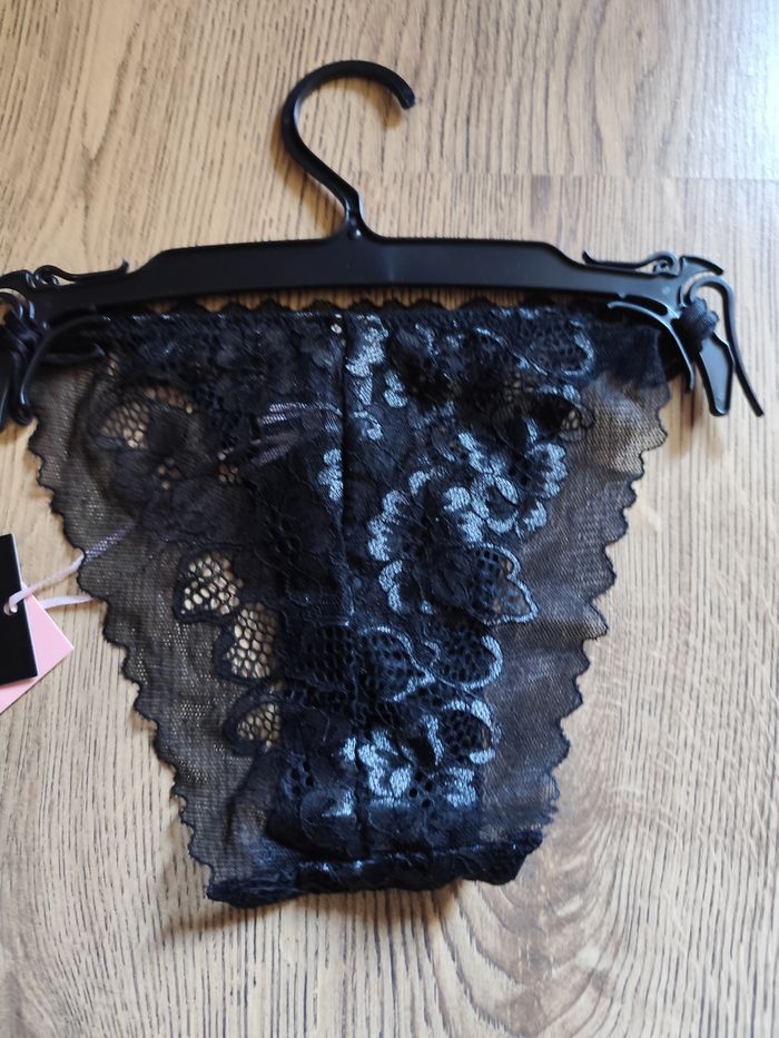 Tanga noir en dentelle. Un renseignement avant achat évite tout mal entendu...