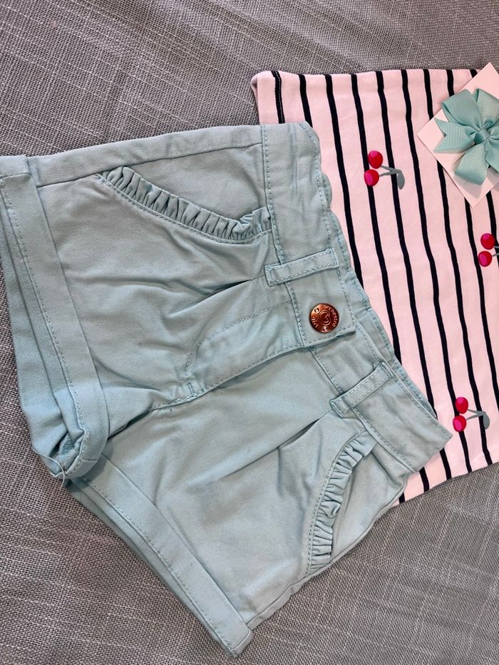 Ensemble été Marque orchestra Barrette incluse Teeshirt taille 23 mois en parfait état Short taille 2 ans attention voir photo tache