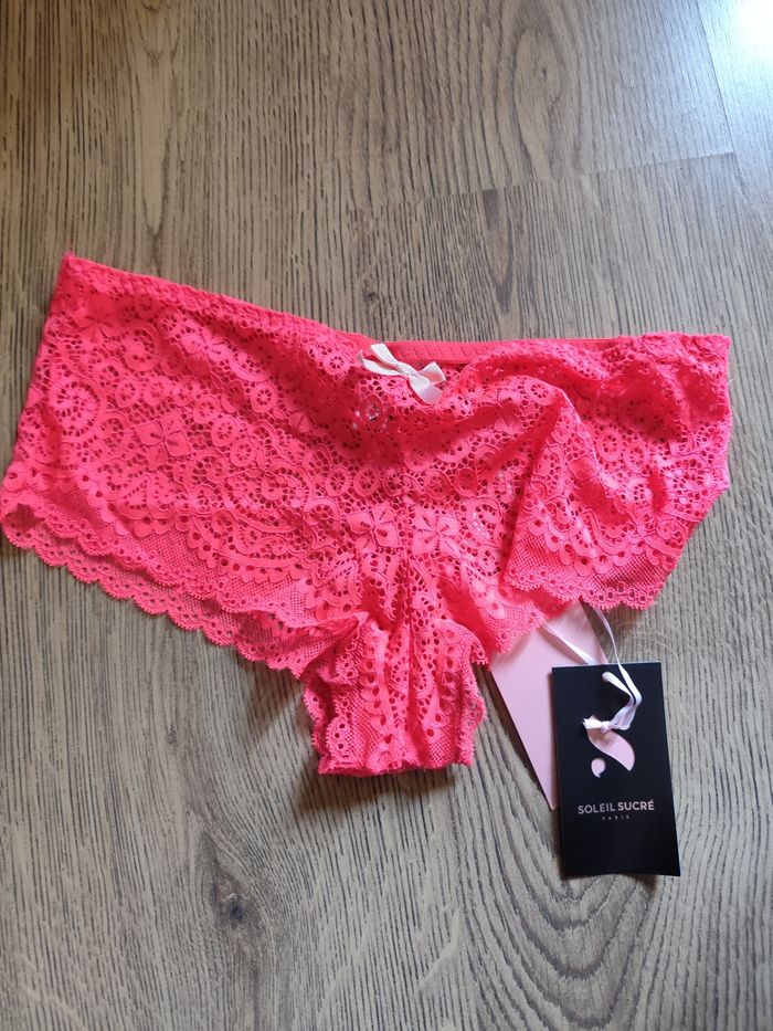 Shorty rose en dentelle. Un renseignement avant achat évite tout mal entendu