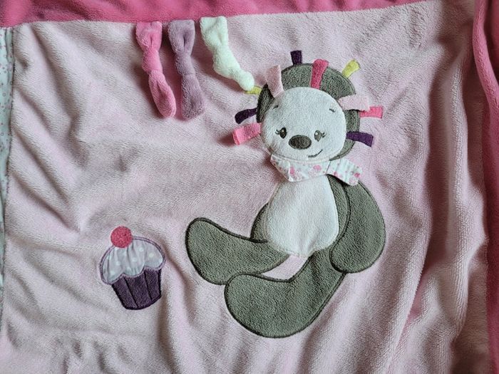 Tapis d'éveil de la marque Nattou Collection Manon et Alizée Dimensions : 80cm/70cm Vendu sans les arceaux. Epais et en velours. Matière douce aux couleurs vives : différentes nuances de rose et violet. Tapis équipé de plusieurs zone d'activés: miroir, papier bruissant, reliefs. Lavable en machine à 30°c.