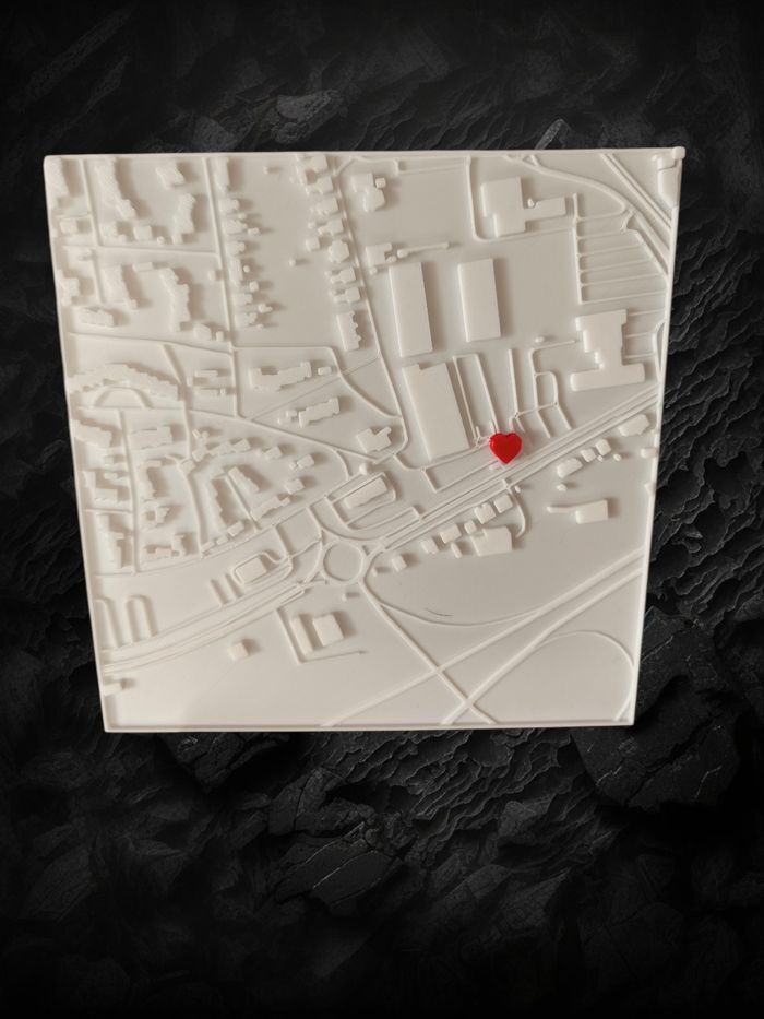 Offrez (ou offrez-vous) un souvenir unique en relief. Cette carte 3D met en valeur un lieu qui compte : 💛 lieu de rencontre 🏡 première maison 💍 demande en mariage 👶 naissance 🌍 ville coup de cœur 🌟 Personnalisable selon les envies de chacun Chaque création est imprimée en 3D avec soin pour faire apparaître les reliefs et les rues avec finesse. Un petit cœur délicatement placé permet de marquer l’endroit exact qui a une signification particulière pour vous Détails techniques : - Impression 3D haute qualité - Dimensions : 19x19cm - Matériau : PLA - Finition soignée - Création réalisée à la commande