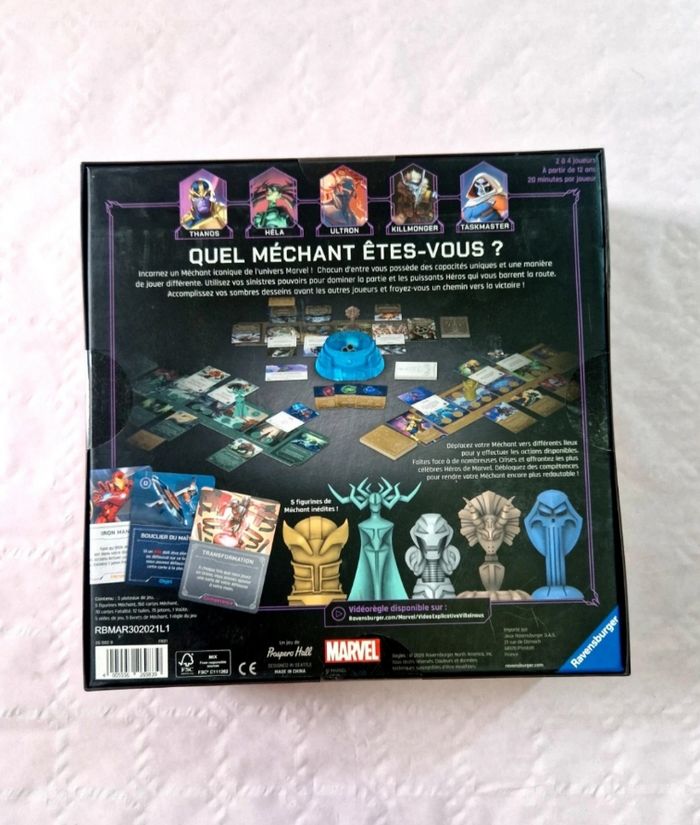 Bonjour. Jeu de stratégie "Marvel Villainous : Goûtez au pouvoir de l'Infini" édité par Ravensburger. Permet d'incarner des méchants emblématiques comme Thanos, Hela ou Ultron. (jamais ouvert) Complet (Boîte + Accessoires + Notice). ​ #marvel #villainous #ravensburger #disney #jeudesociete #thanos #strategy