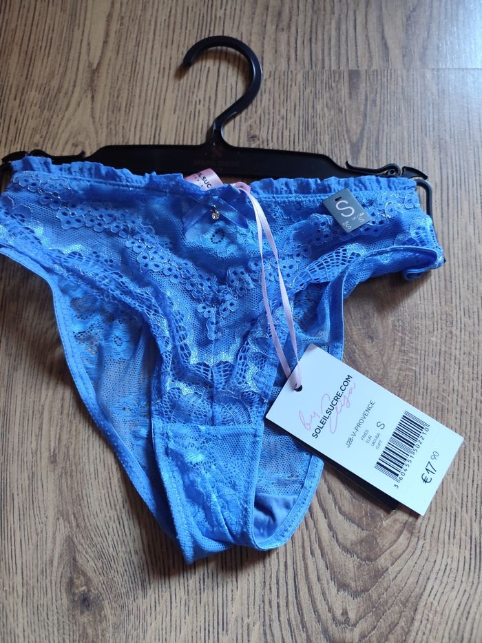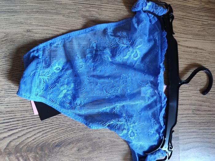 Tanga bleu en dentelle Un renseignement avant achat évite tout mal entendu