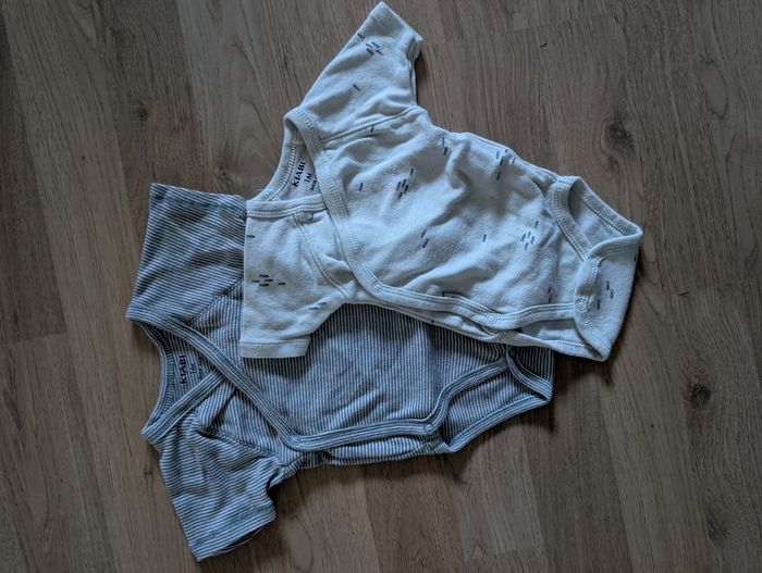 Bodies très peu portés. En très bon état. Fermeture par devant. 1 mois 56 centimètres.