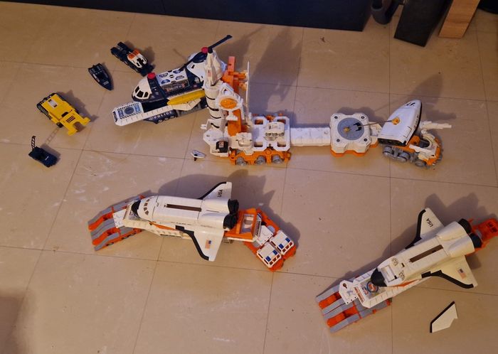 Bonjour. ​Vends un ensemble de jouet vintage modulaire Matchbox de la gamme Mega Rig. Ce système permet d'interchanger les pièces pour créer des véhicules personnalisés. ​L'état de conservation varie selon les pièces : certaines sont en bon état esthétique tandis que d'autres présentent des marques d'usure plus prononcées ou un jaunissement du plastique. De même, certains sous-ensembles sont complets alors que d'autres sont partiels. Ce lot est idéal pour un collectionneur souhaitant compléter ses sets existants ou pour débuter une collection avec une base importante de pièces. ​Vendu en l'état, tel que présenté sur les photos. Une aile de navette est désolidarisée mais fournie. Les connecteurs modulaires sont fonctionnels. ​Détails techniques : ​Gamme : Mega Rig. ​Marques : Matchbox / Mattel / Hot Wheels. ​Années : 1997 et 1998. ​ #megarig #matchbox #nasa #police #vintage #jouetvintage #jouet90 #collection #modular #espace