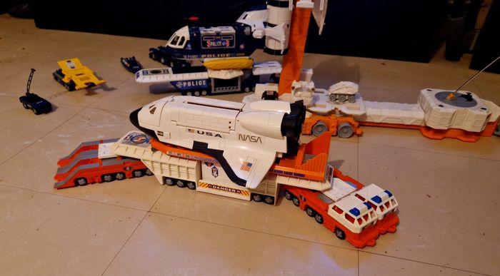 Lot jouet vintage,   Mega Rig Matchbox Mattel Navette Spatiale Shuttle Expedition et Police Force 1997 1998