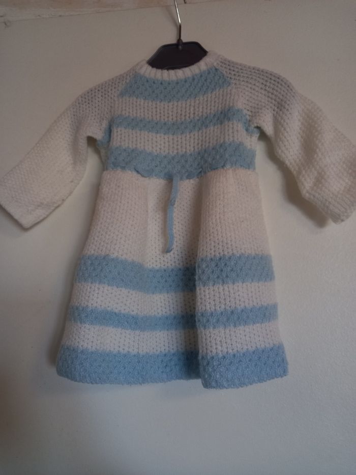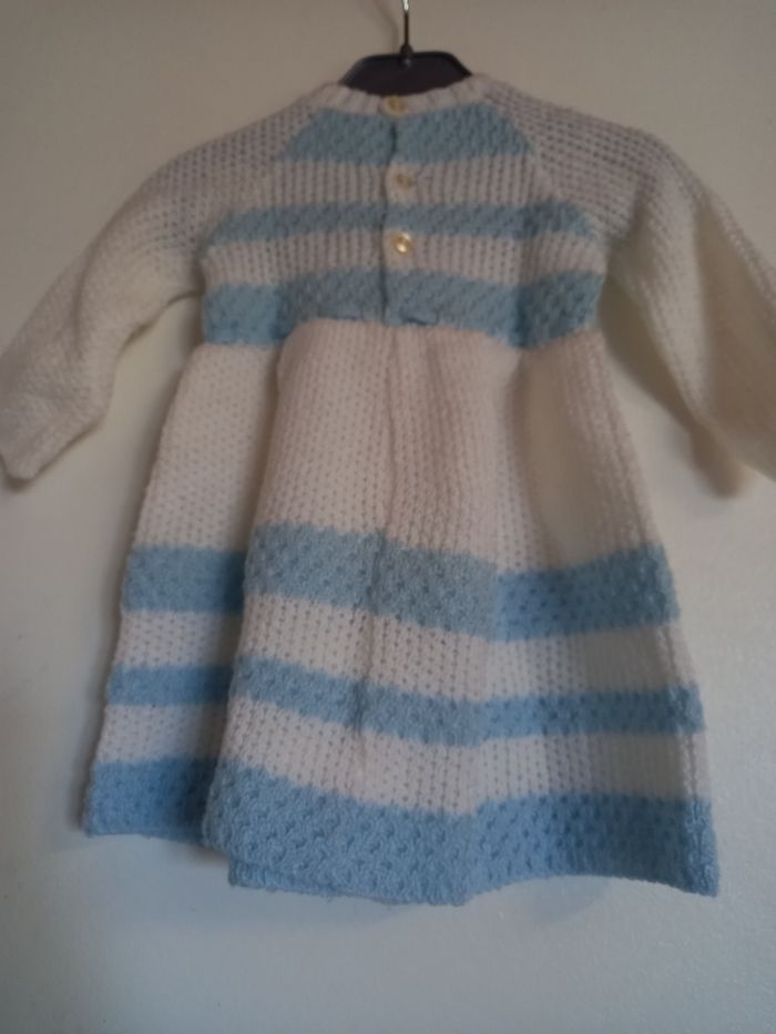 Robe vintage bleu et blanche 12 mois en très bon état // acrilyque lainage // fermeture dos boutons // année 80