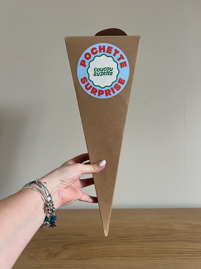 Vends une pochette surprise #coucousuzette. La pochette comprend : - x2 paires de chaussures (taille unique / adulte) - x1 pin's - X1 barrette - X1 planche d'autocollants et x1 carte C'est une pochette "surprise", pas de photos supplémentaires 😉