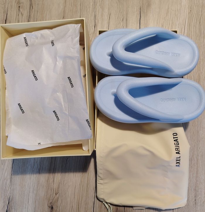 Tong mule de marque axel arigato 🔵Produit neuf ⚫Pointure 37 🔴Tendances et stylé ⚪Vendu avec boîte à chaussure d'origine (boîte légèrement abîmé sur un côté ne gêne en rien) Vendu avec le sachet sac #maje #axelarigato #tong #mules
