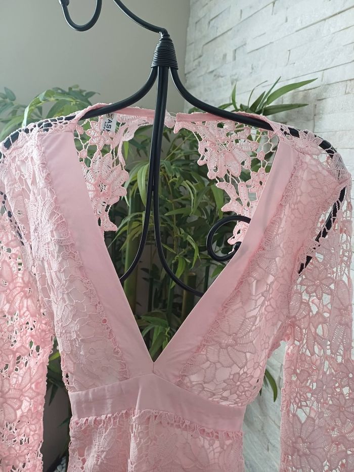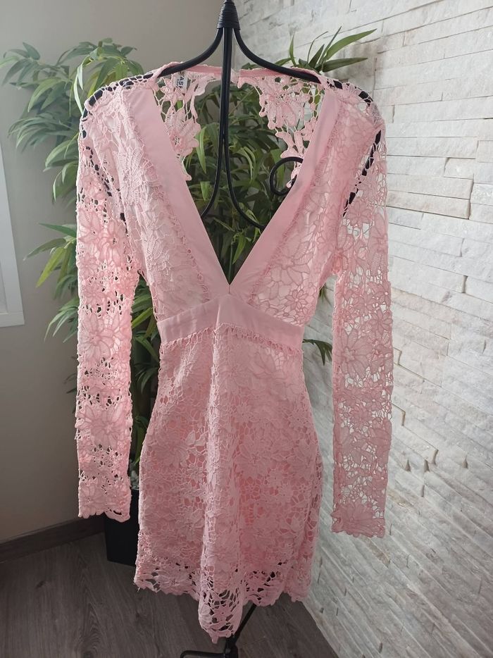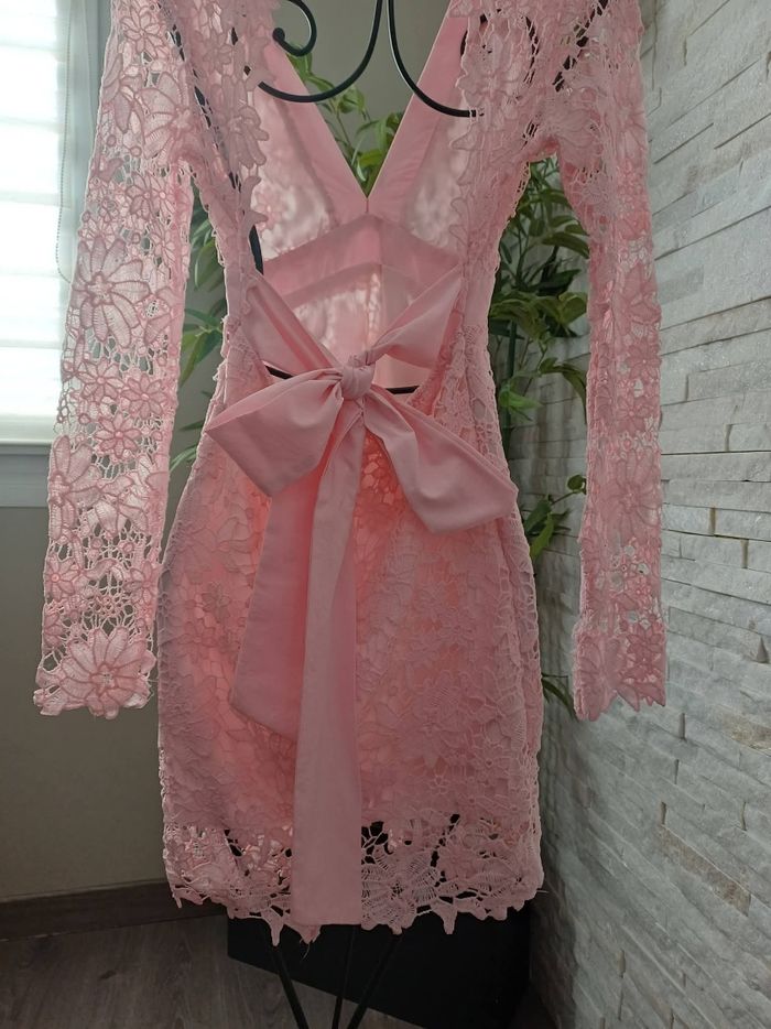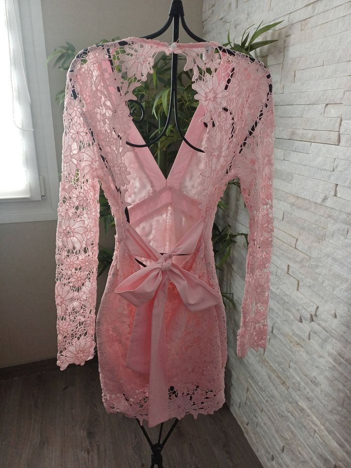 Dentelle et broderie Manches longues Dos nu Grand décolleté Nœud à nouer dans le dos Taille S/M Portée une fois
